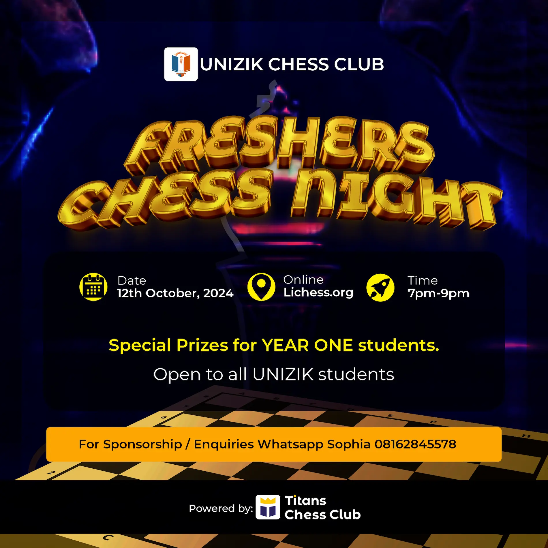 This is a FREE annual chess tournament we hold at the Unizik chess club for our latest freshers! 😉, we kick off with this online version and later the Physical event.
